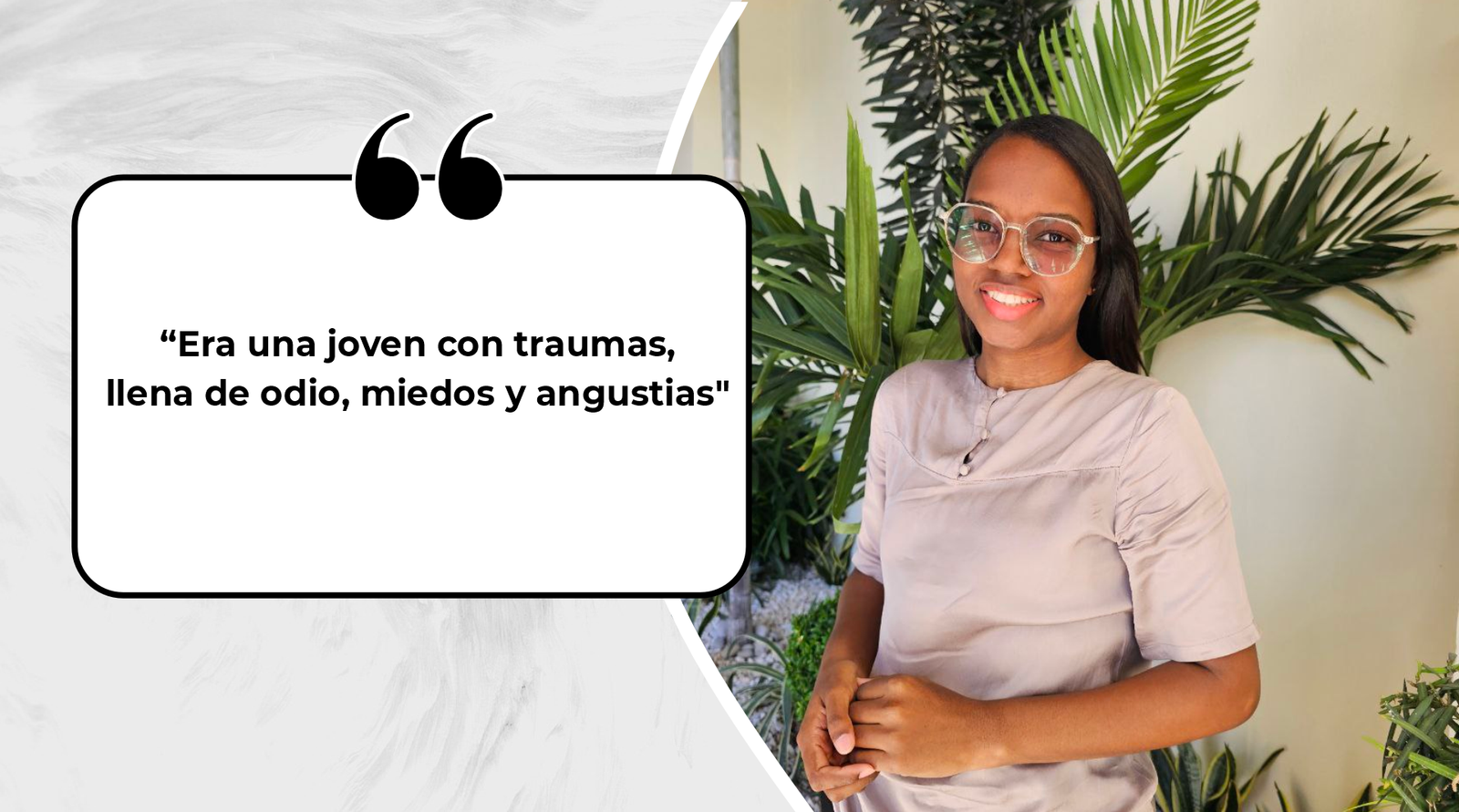 “Era una joven con muchos traumas internos. Para las demás personas yo era una chica tranquila, pero en realidad vivía resentida a causa de los maltratos de mi padre hacia mi madre. Mi papá llegaba borracho a la casa, discutía mucho y rompía las cosas en el hogar, hasta que un día mi padre terminó agrediendo a mi madre. Esa situación familiar hizo que durante 2 años yo sintiera odio hacia mi padre, generando en mi como hija, irrespeto hacia el. Por otro lado, me sentía muy angustiada y tenía miedo de la oscuridad.